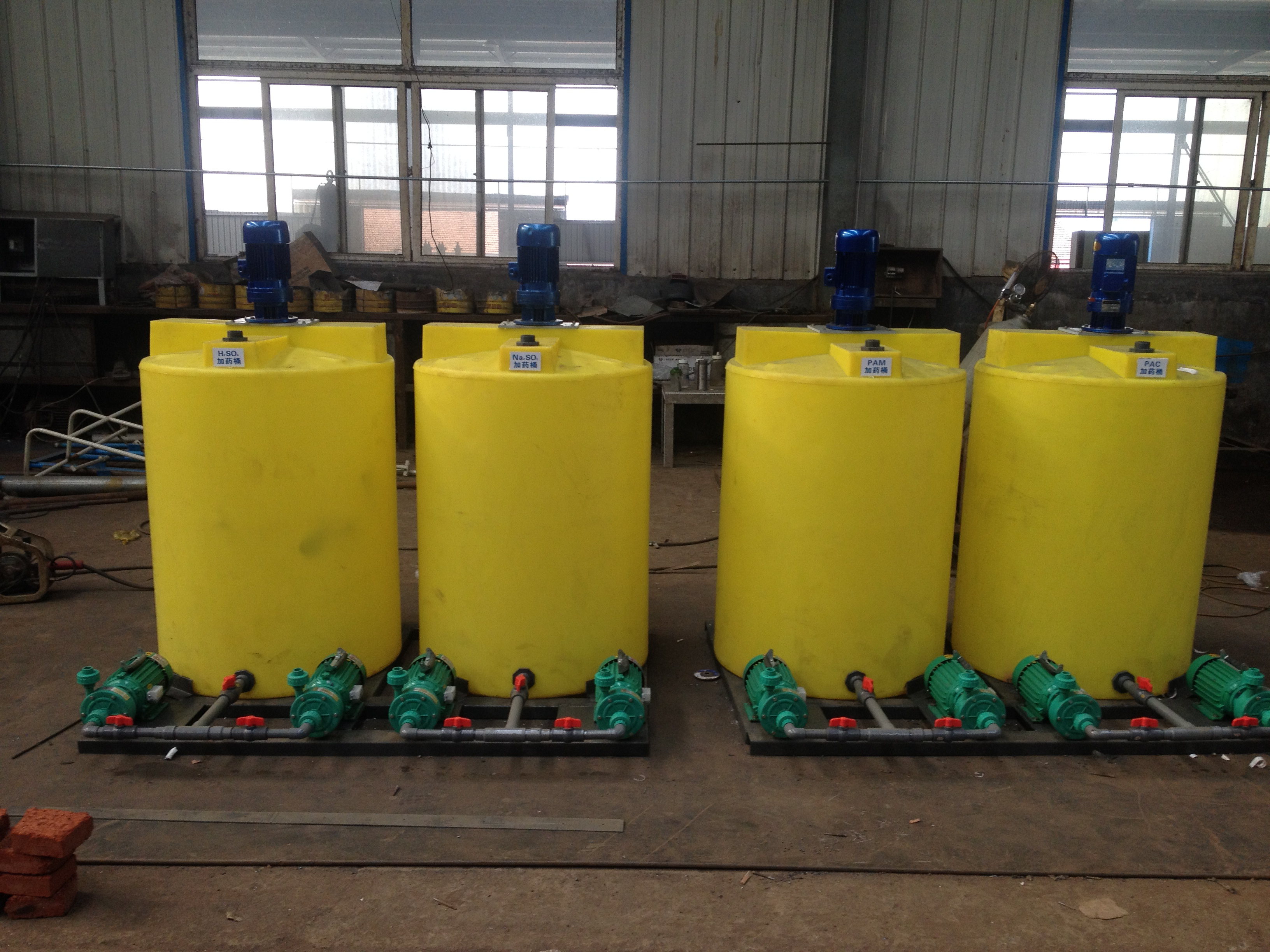 絮凝劑的投加都有一個(gè)經(jīng)濟(jì)性能比最佳的范圍,因此絮凝劑的投加量需要經(jīng)過(guò)燒杯試驗(yàn)初步確定后再根據(jù)實(shí)際運(yùn)行情況予以調(diào)整。而要想實(shí)現(xiàn)準(zhǔn)確的調(diào)整,絮凝劑系統(tǒng)必須有一個(gè)比較準(zhǔn)確的計(jì)量。干式投加一般有計(jì)量容積和計(jì)量質(zhì)量?jī)煞N方法,兩者的誤差分別為5%左右和1%左右。濕式投加有縱重力投加、水射器投加、計(jì)量泵投加等方式,都是計(jì)量所加絮凝劑的容積。中小規(guī)模的混凝處理系統(tǒng)的絮凝劑投加一般使用計(jì)量泵投加方式,人工調(diào)整和自動(dòng)調(diào)整都能很容易地實(shí)現(xiàn)。