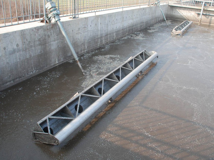 潷水器是間歇式活性污泥法處理污水的必配機械裝置。間歇式活性污泥法的污水處理機制與普通活性污泥法相同,其區(qū)別在于原污水不是順次流經(jīng)各個處理單元而是放流到單一反應(yīng)池內(nèi),按時間順序?qū)崿F(xiàn)不同目的的操作,其基本操作程序由進(jìn)水、反應(yīng)、沉淀、出水和待機等五個基本過程組成。從污水流入開始到待機時間結(jié)束為一個周期。潷水器通過電控柜內(nèi)的時間繼電器和螺旋推進(jìn)裝置內(nèi)的引程開關(guān),實現(xiàn)定時、定量排放達(dá)標(biāo)處理水,從而使SBR池實現(xiàn)連續(xù)處理污水的最終目的。